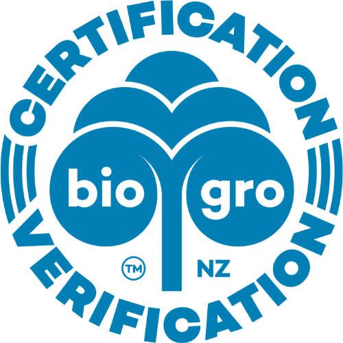 Our ingredients are certified organic by BioGro New Zealand, one of the country’s leading organic certification bodies. This certification confirms that our products with the organic label are made in accordance with strict organic standards, without the use of synthetic chemicals, genetically modified organisms, or harmful processing methods. It reflects our commitment to natural integrity, environmental care, and clean-label excellence.